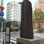 江戸やっちゃばの変遷-神田青物市場発祥の地神田須田町交差点の近くに、神田青物市場発祥之地の石碑があります。神田川沿いの河岸からの荷揚げ品、日本橋川の鎌倉河岸の荷揚げ品などを扱う市場で、その広さ一万五千坪という規模でした。青物市場の事をやっちゃば、と言いますがセリの声がそのように聞こえたため語源となったという説があります。神田青物市場は昭和に入り秋葉原へ移転、その後大田市場へと移転し現在に至ります。